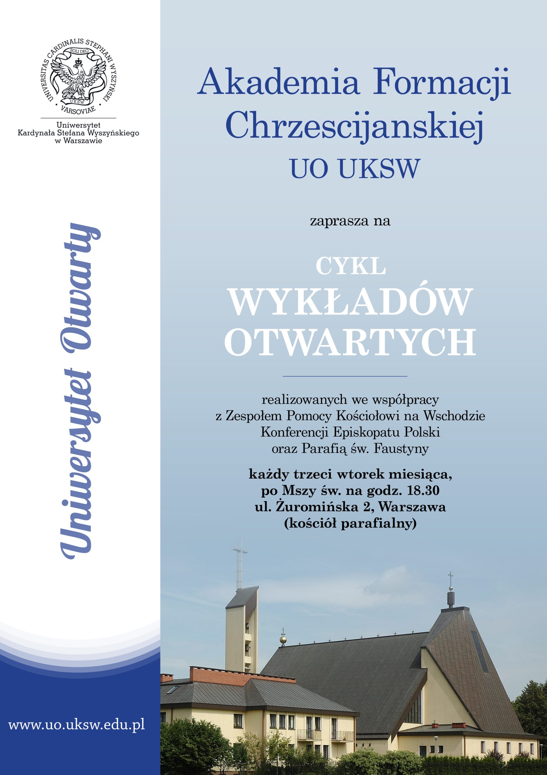 We wtorek 21.10 o godz. 19.00 w kościele św. Faustyny w Warszawie na Bródnie, ul. Żuromińska 2 (blisko metra Kondratowicza), odbędzie się pierwszy z cyklu wykładów Uniwersytetu Otwartego UKSW.